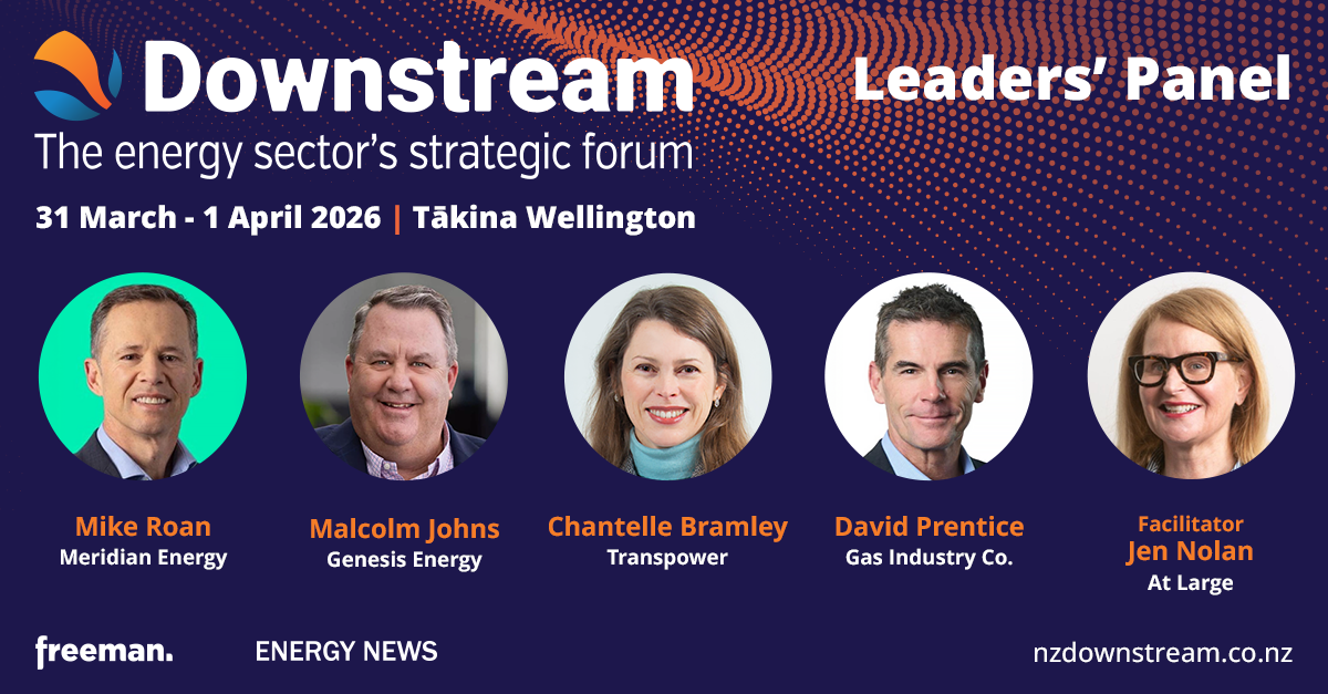 This panel at Downstream features Mike Roan, Meridian Energy; Malcolm Johns, Genesis; Chantelle Bramley, Transpower; and David Prentice, Gas Industry Co. and is facilitated by Jen Nolan, At Large, as they reflect on what’s worked, what hasn’t, and what lies ahead for New Zealand’s energy system.